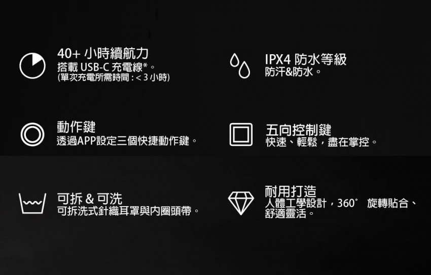 • 耐用打造:人體工學設計,360° 旋轉貼合、舒適靈活