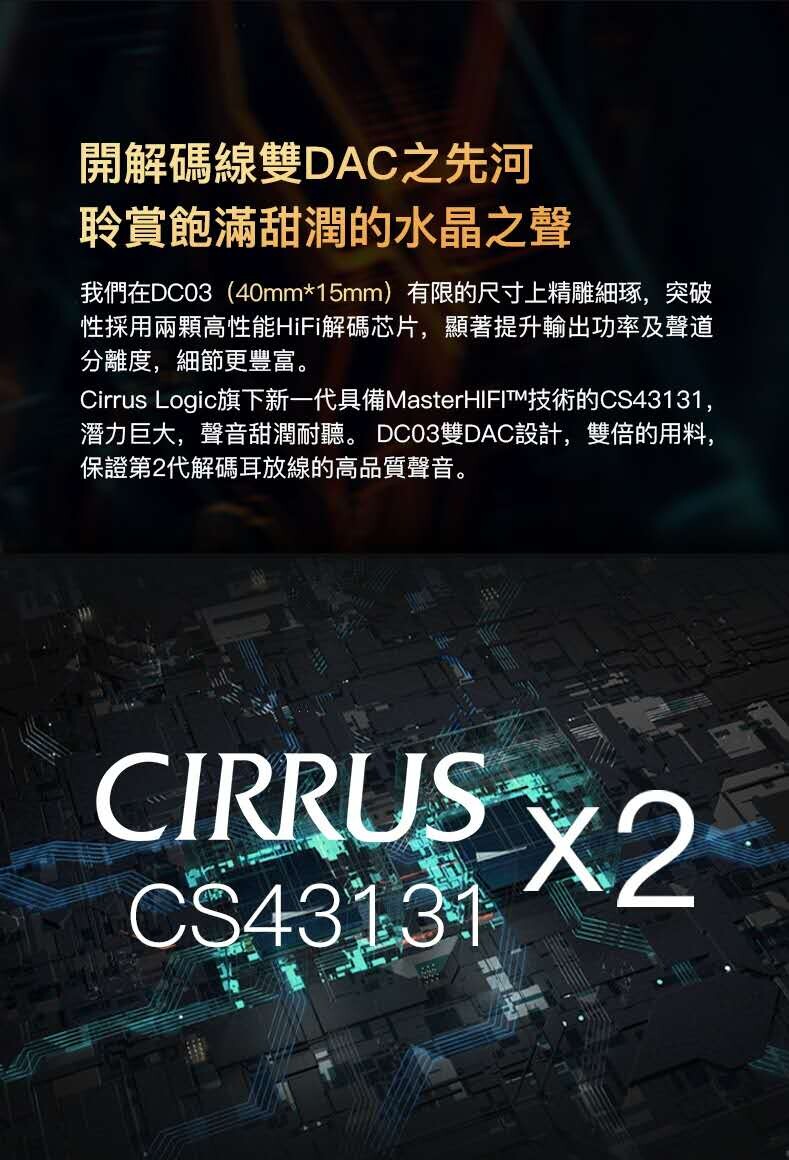 DAC:雙CS43131(雙DAC)、可作為電腦USB音效卡使用、信噪比:127dB、THD+N:0.00028%