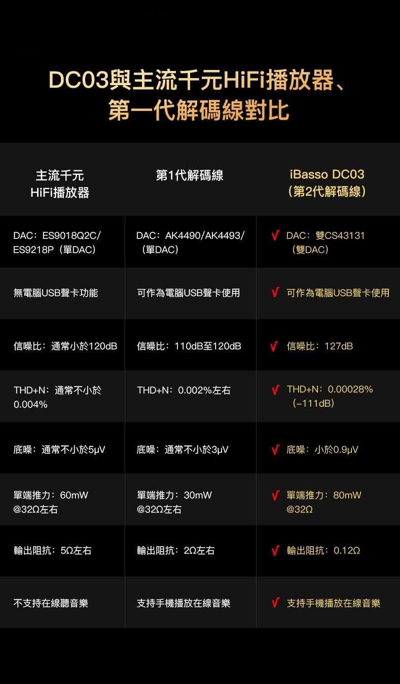 播放機相比,也不落下風。在突出的指標基礎上,DC03歷經