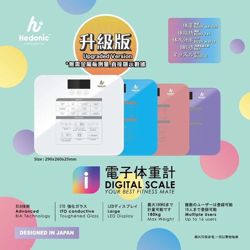 日本設計品牌 Hedonic 電子體重計 升級版 | 原裝香港行貨 | 1年保養 簡介