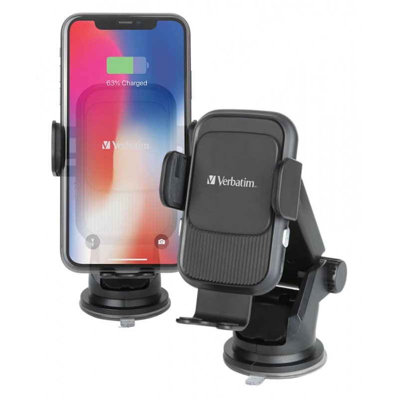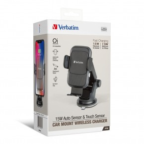 Verbatim 15W 無線充電觸控感應車充 - 只需輕鬆把手機放在充電支架上,輕觸感應會啟動自動上鎖及釋放功能,確保在駕駛時安全連接。內置電容儲存足夠電量,即使只有短暫連接後或關閉汽車引擎後,也能透過快速釋放按鈕釋放手機。