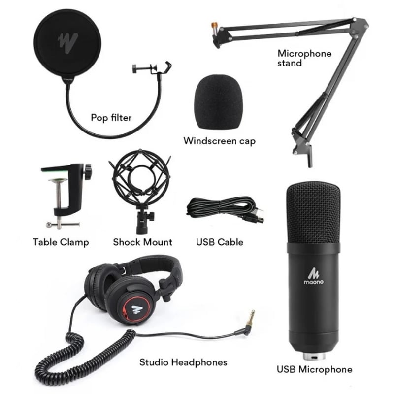 MAONO A04H專業USB電容麥克風,帶耳機套裝-即插即用