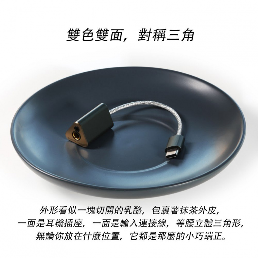 雙色雙面,對稱三角 一面是耳機插座,一面是輸入連接線,等腰立體三角形, 無論你放在什麼位置,它都是那麼的小巧端正