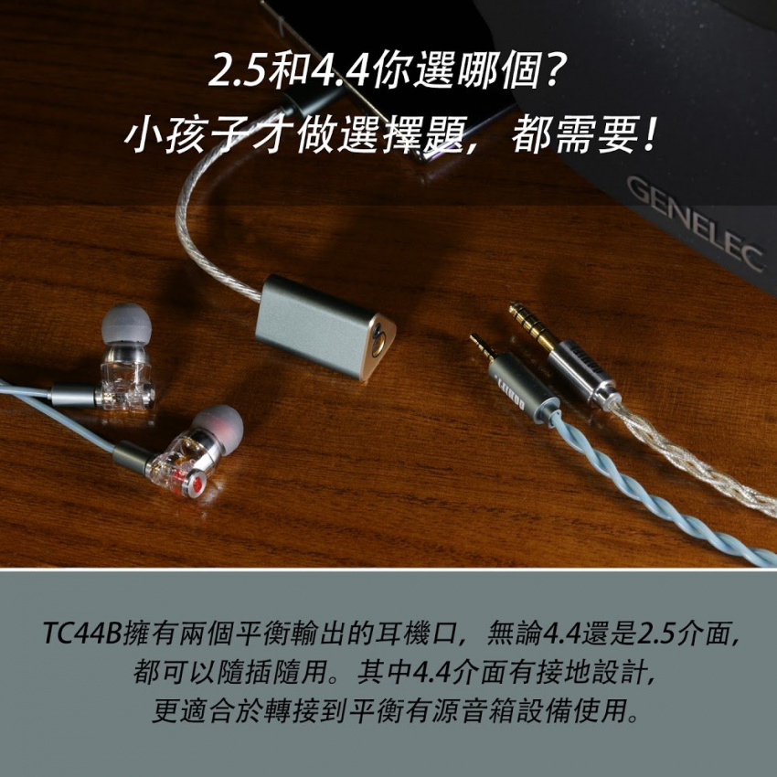 小孩子才做選擇題,都需要! TC44B擁有兩個平衡輸出的耳機口,無論4.4還是2.5介面, 都可以隨插隨用。