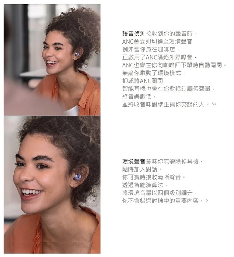 - 環境音 支援 (4段調節 及 人話感測模式)