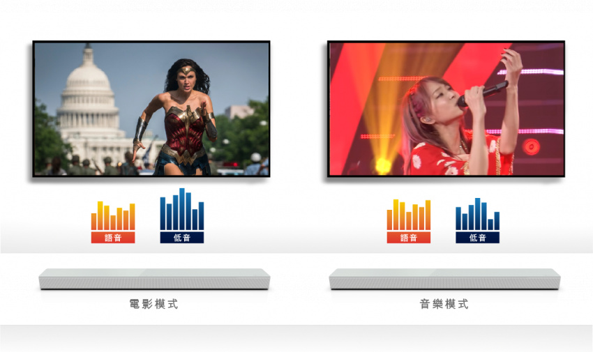 內置2種音效模式,包括 Movie 及 Music,可以使用遙控器隨意轉換,讓你配合不同情景使用。