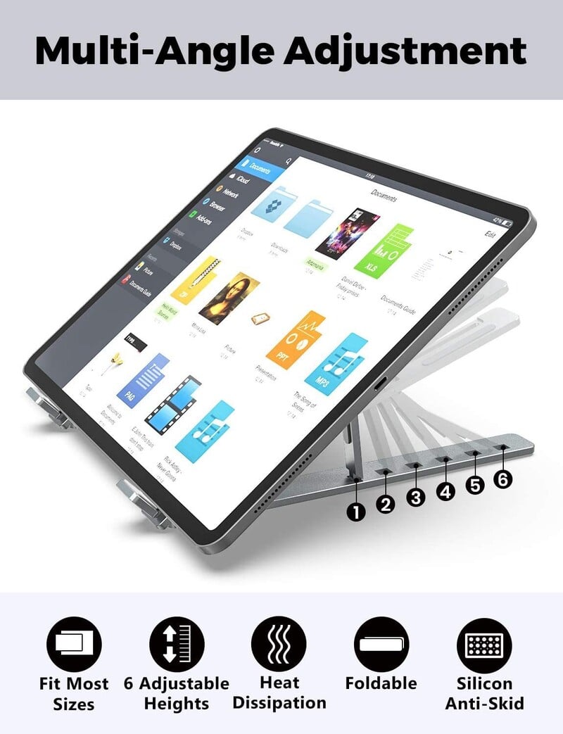 • 適合大多數尺寸(最大15英寸),並具有6個可調高度