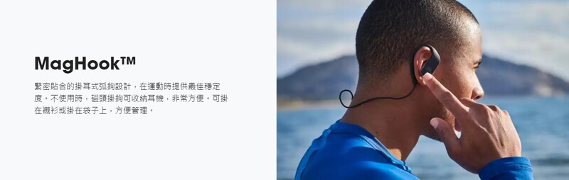 緊密貼合的掛耳式弧鉤設計,在運動時提供最佳穩定度。不使用時,磁頭掛鉤可收納耳機,非常方便。可掛在襯衫或掛在袋子上,方便管理。