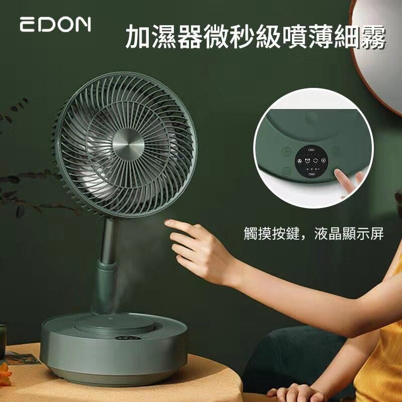 EDON E908B風扇能屈能伸🦾既喺坐枱扇又喺落地扇🤩摺疊收納好慳位👍⑤扇葉搭配⑤檔風力🌀左右120°搖頭大幅度低音送風💨仲有埋納米噴霧加濕功能💦涼爽之餘仲可以保濕🌫另外磁吸遙控設計🧲無需再到處搵遙控🎛內置大容量電池🔋1檔風可用7-15個鐘⏲無線束縛室內室外都能享受涼風🍃