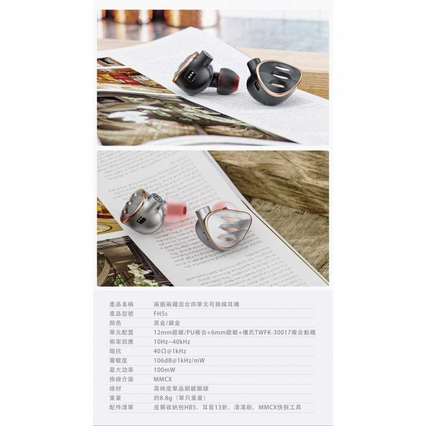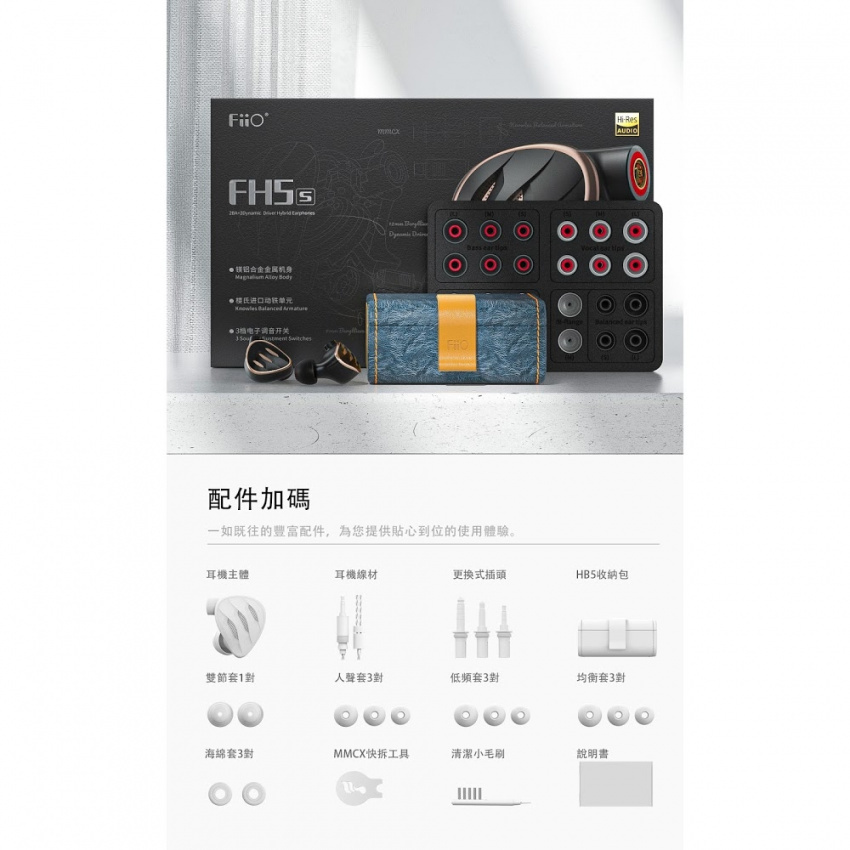 【FiiO FH5s 兩圈兩鐵MMCX單晶銅鍍銀可換線耳機】