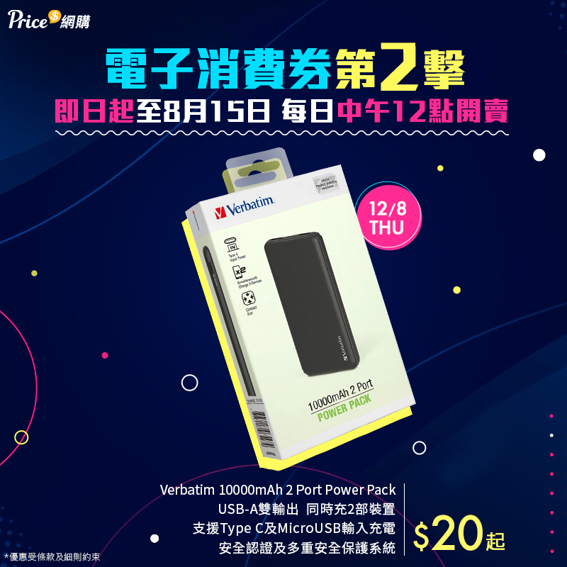 ![Verbatim 10000mAh 2 Port Power Pack [黑色]【消費券激賞】 Verbatim 10000mAh 2 Port Power Pack [黑色]【消費券激賞】](https://www.price.com.hk//space/ec_product/439000/439474_l2pysj_0.png)