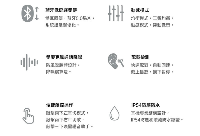 - 音樂播放時間:(50%音量) 耳機3.5hr,耳機+充電盒 15hr
