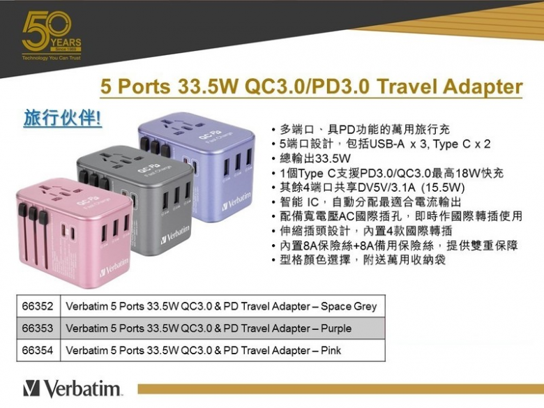 - 5端口充電器,包括3個USB-A及2個Type-C,最大總輸出33.5W