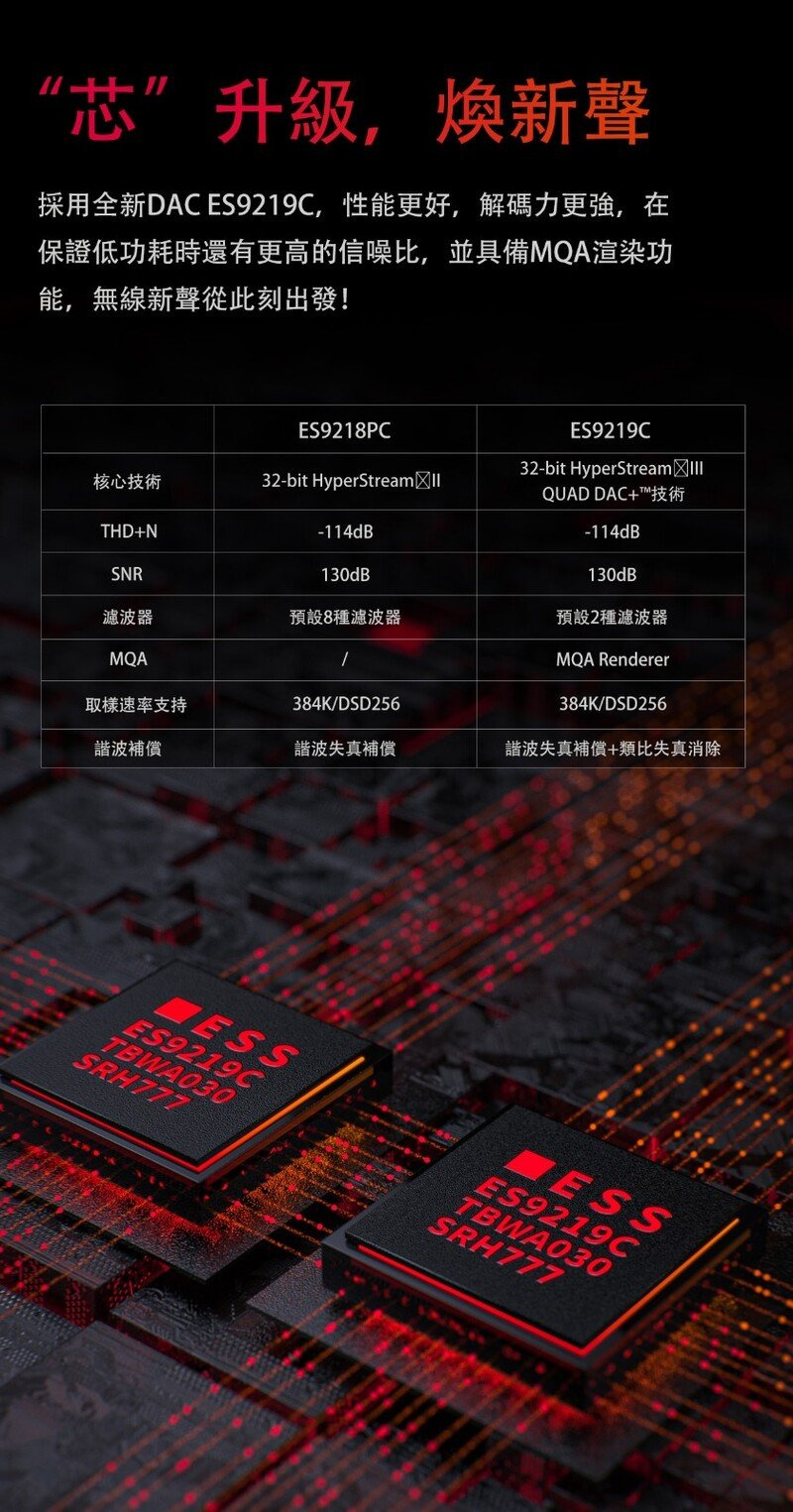 高性能DAC 雙ES9218P,聲音還原更加精準。