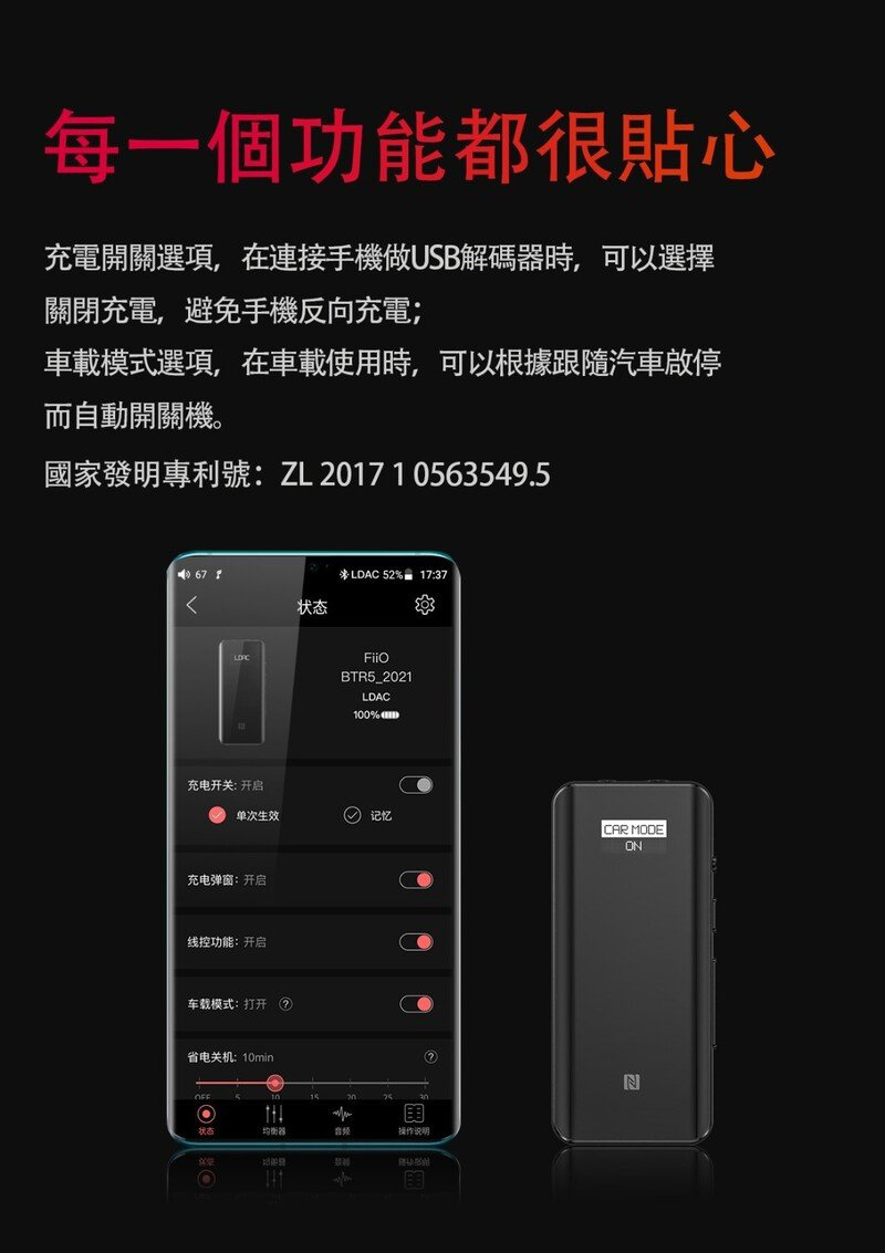 FiiO全新升級-隨身HiFi藍牙音樂接收器BTR5,融合無線傳輸和高品質的音樂享受,完美詮釋了有顏也有實力。採用藍牙5.0版本CSR8675低功耗藍牙晶片,並支援AAC/SBC/aptX/aptX LL/aptX HD/LDAC全格式藍牙編碼,