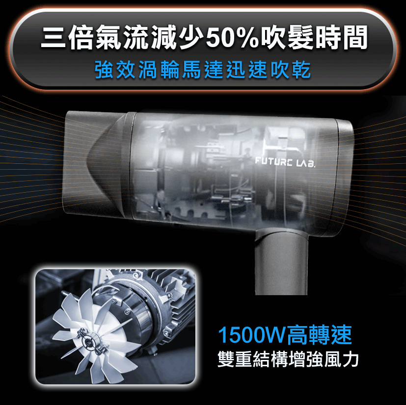 • 1500W轉速同三倍氣流,更減少左50%既吹頭時間。