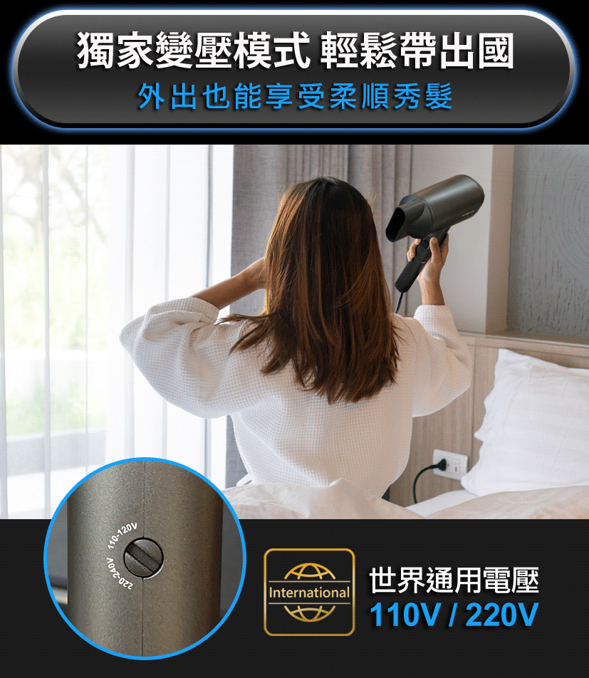 • 調節最適合角度,頭皮到髮尾都能吹乾