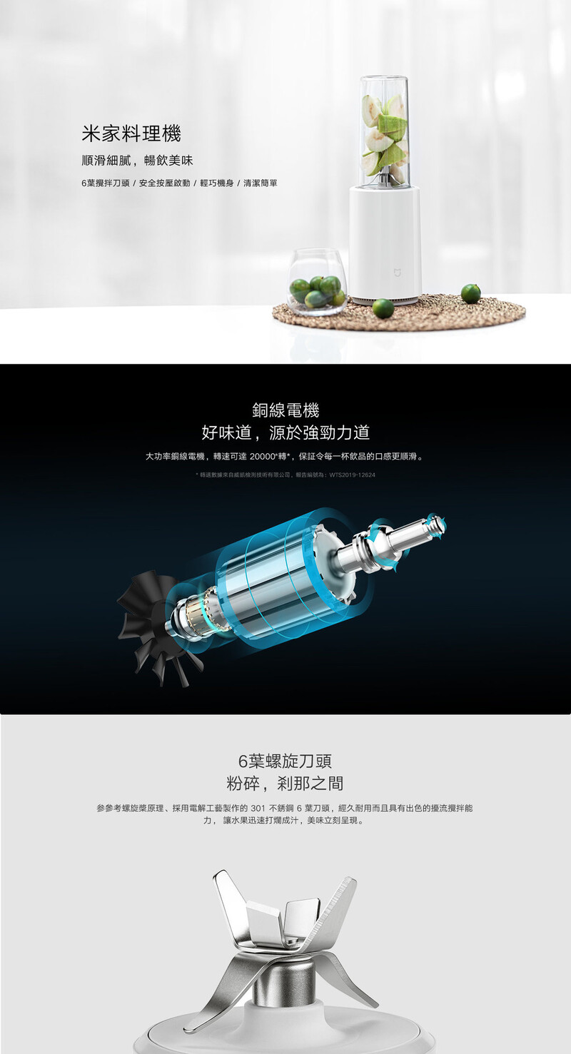 - 米家料理機6塊不鏽鋼刀頭,配合強勁摩打,水果瞬間化為果汁