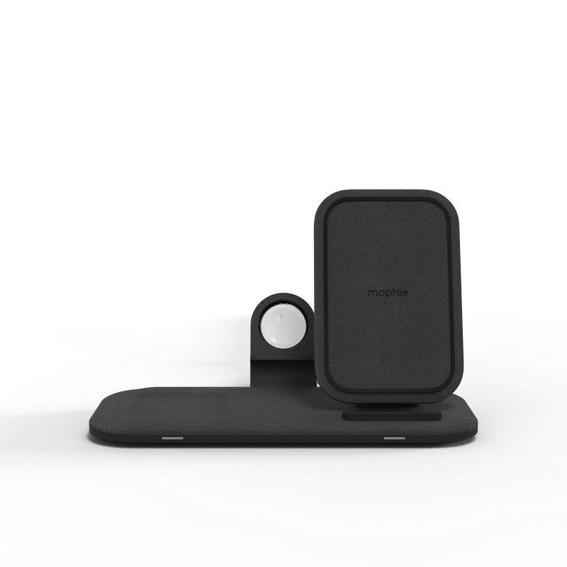 無線充電座+ 是讓您同時為所有常用設備充電的解決方案。配備兩個專用無線充電點和一個 USB-A 端口,您的所有設備都將充滿電,隨時可以使用。