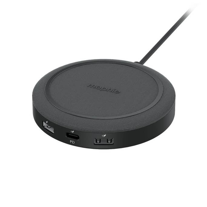 節省空間且用途廣泛,無線集線器很快就會成為您最喜歡的桌面配件。mophie 的無線集線器具有無線充電錶面和三個 USB 電源端口,可在一個方便的地方為您的日常設備充電。