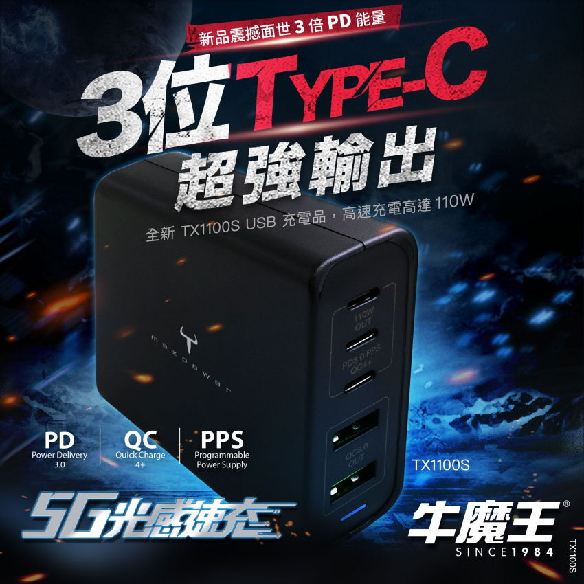 - 5 位 USB Type-C 及 A 輸出,總輸出高達 110W