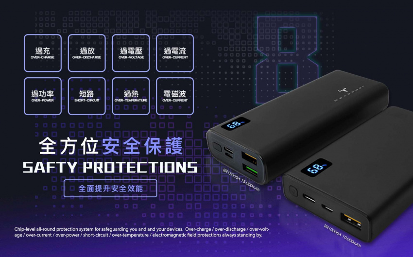 - 內置智慧晶片,提供過充、過放、過電壓、過電流及短路等多種保護,安全可靠