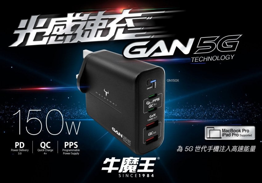 - 嶄新 GaN 新一代充電技術,專為 5G 手機高速充電而設 ,更快、更輕巧、更省電
