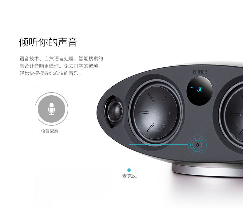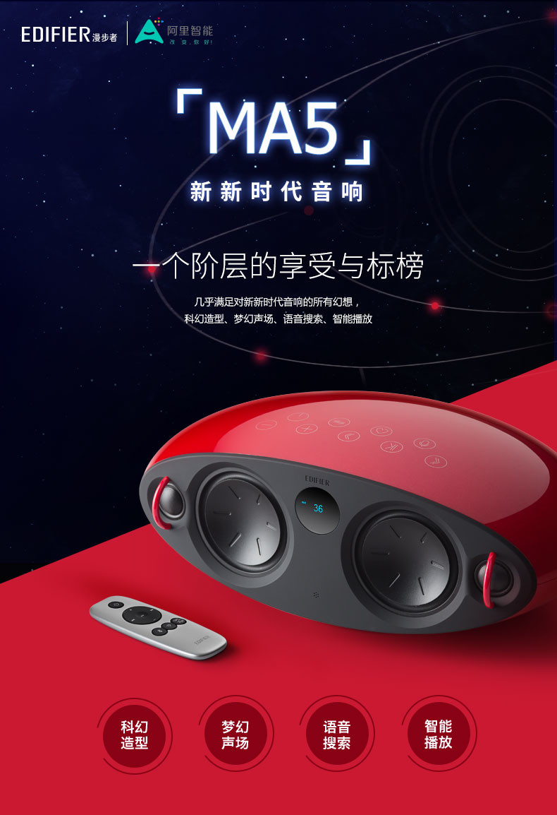 漫步者MA5並不是一款簡單的WiFi音箱,相反,它是一款非常有內容的智能雲音響。在去年的發佈會上,漫步者宣佈與阿里智能深度合作,將豐富的音樂/有聲讀物內容資源、語音智能控製等功能整合到旗下音箱產品中,並一下發佈了三款智能音響,MA5則是當中的旗艦產品