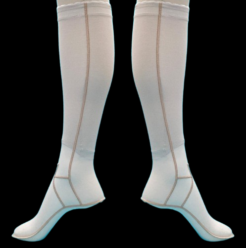 智能壓力衣的壓力襪是漸進式壓縮設計,從腳踝向上壓縮,壓縮程度逐漸減少。