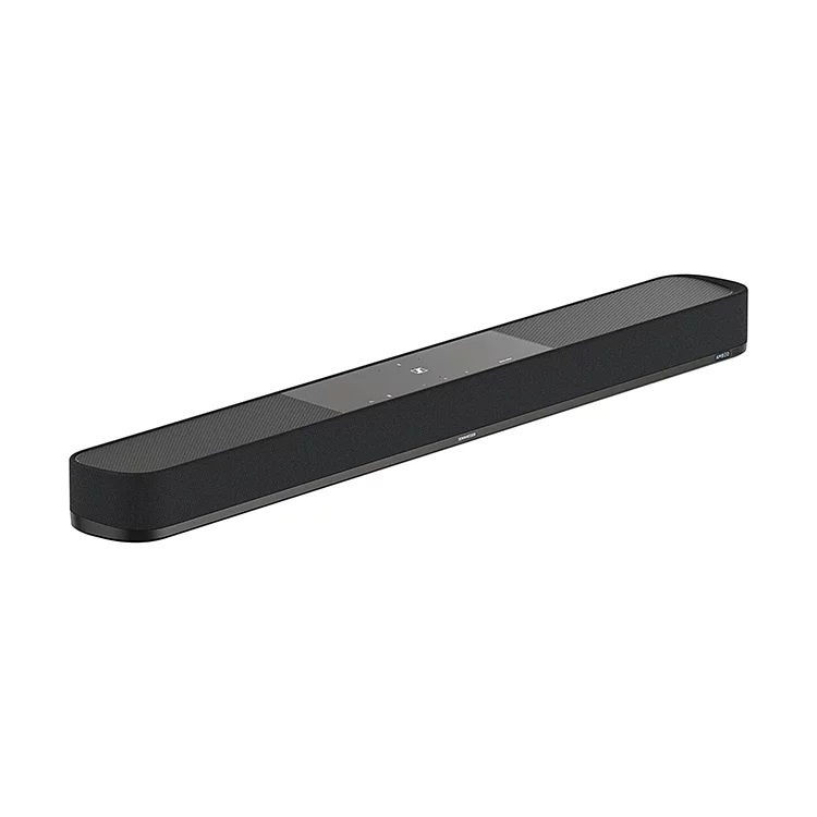 條形音箱設計秉承了森海塞爾音響一貫的 DNA。七個高端鋁制錐形全域驅動器確保令人無比震撼的清晰保真度和清晰的中音。密閉式腔室容納雙 4”長投低音,低音低至 38Hz。
