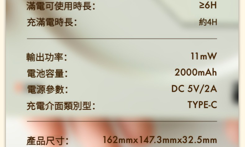 - 滿電時長:約4H