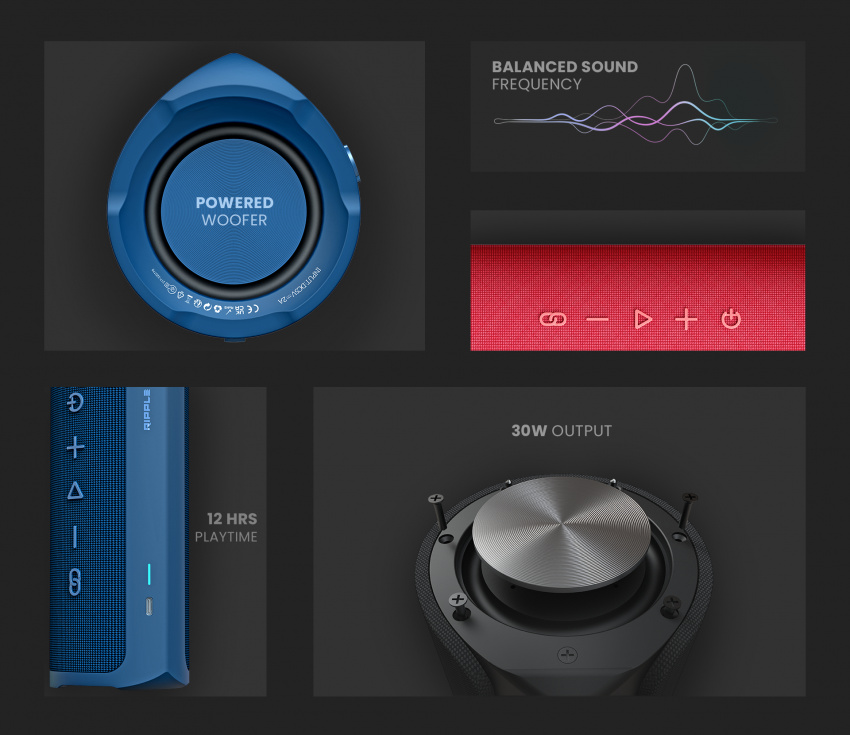 ✅ 30W 輸出功率 (10W 高頻+20W 低頻) ✅ 可同時兩隻喇叭連接Surround Sound ✅ 12 小時Play Time ✅ 🥁 強勁低音及紮實聲音 ✅ 雙向覆蓋全音域 🔊 ✅ IPX7 防濺水🌧️ ✅ 藍牙5.3 更穩定 ✅ Type-C 10W 快速充電🔌
