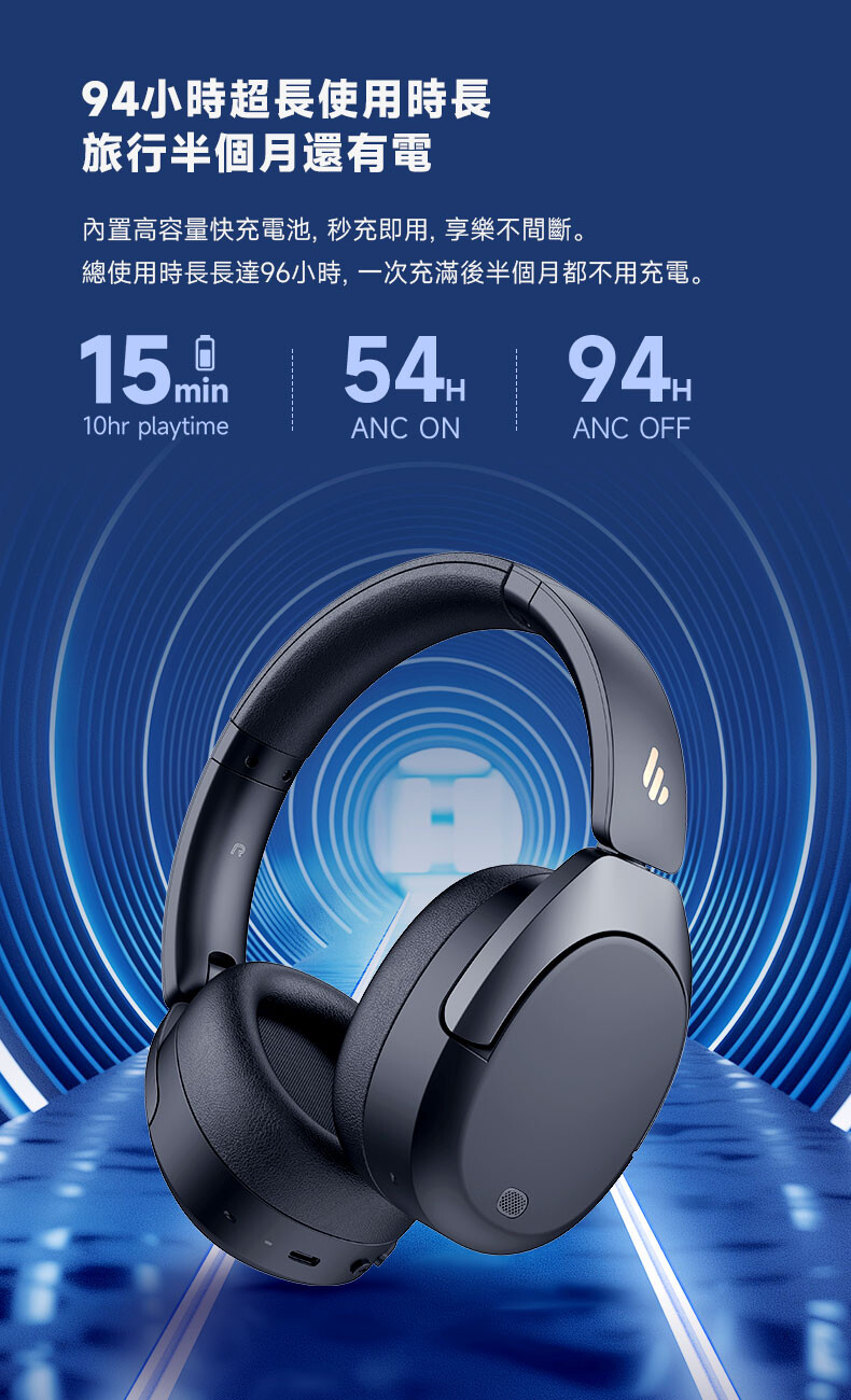 - ANC 關閉時可連續播放約 94 小時。