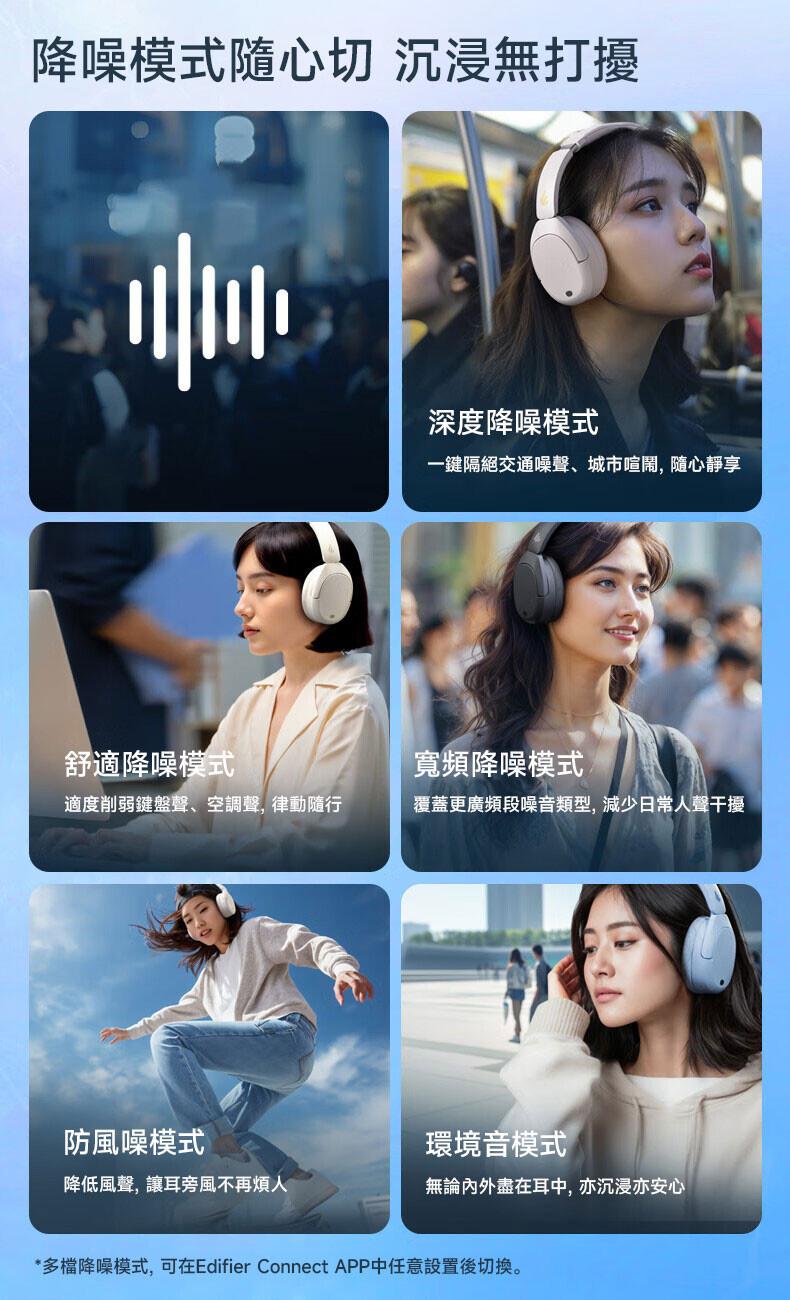 - 多種降噪模式可供選擇,適應各種場景。