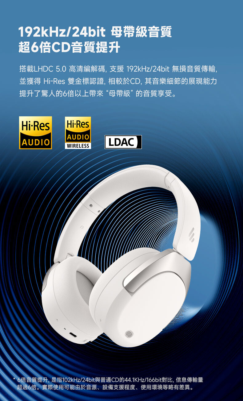 - 透過Hi-Res Audio 和Hi-Res Audio Wireless 認證的沉浸式音效。
