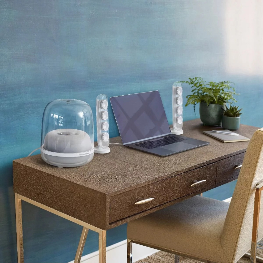 - 標誌性設計:Harman Kardon SoundSticks 4 能夠在當代任何家裝中脫穎而出。開創性的透明球頂設計和圓滑輪廓與您的裝飾無縫融合。兩個衛星喇叭和重低音喇叭外蓋外觀驚艷,採用內部波紋表面設計,襯托音樂之美。