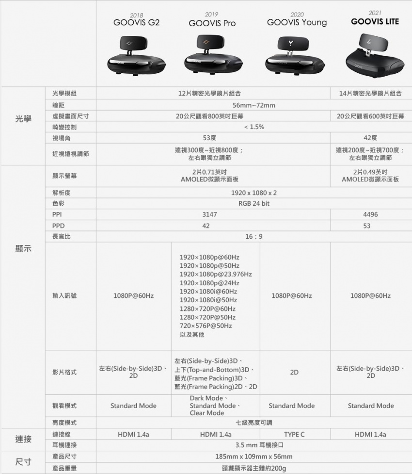 - GOOVISLITE 為您的雙眼提供超高解析的圖像,搭配上更加飽和和鮮豔的色彩,使您能輕鬆觀賞、眼睛舒適不疲勞。