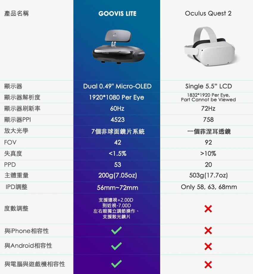- GOOVIS LITE採用了最高標準的鏡頭設計,加工和組裝,