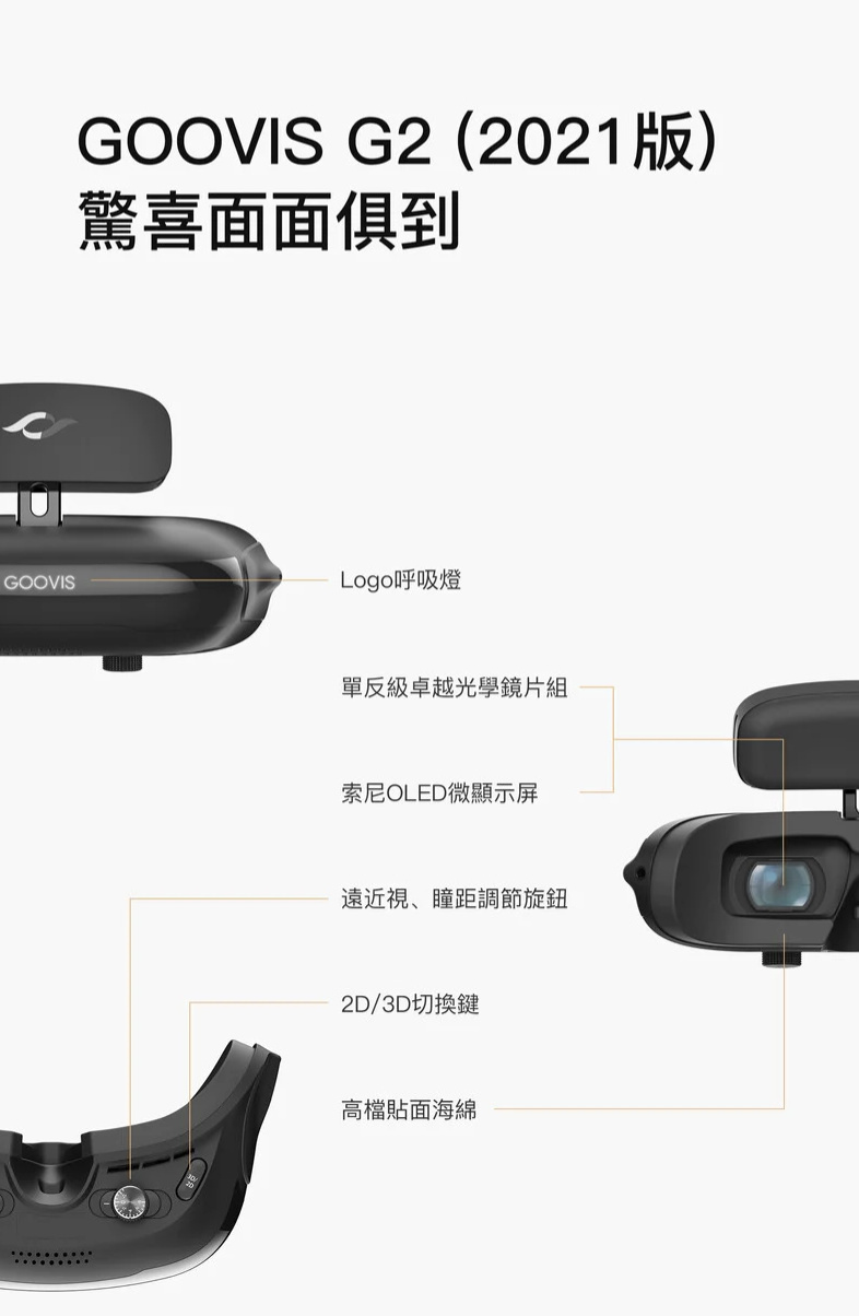 - 支援2D/3D影片的頭戴顯示器
