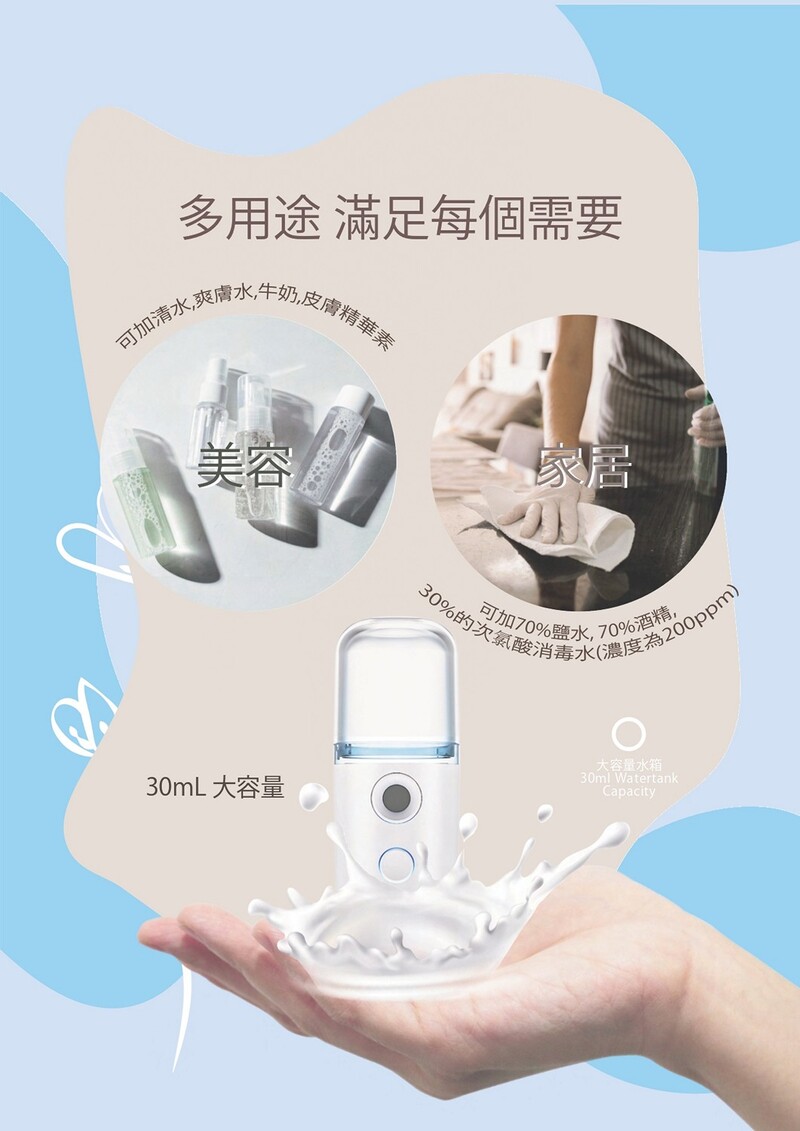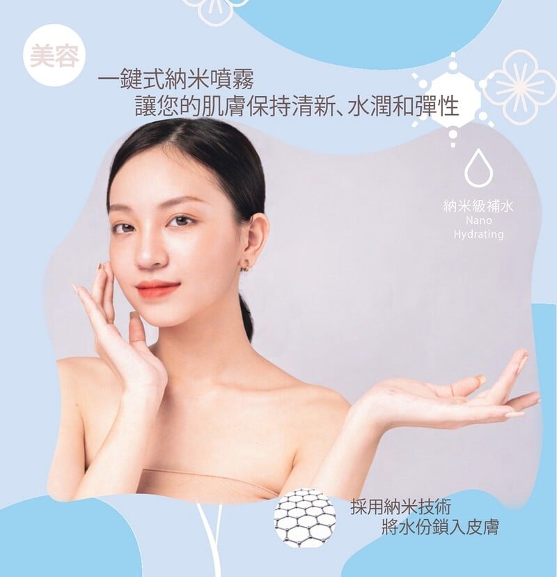 一鍵式納米噴霧,讓您的肌膚保持清新、水潤和彈性;