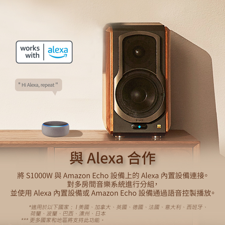 • 兼容 Apple Airplay、Amazon Alexa (*)、TIDAL Connect (**) 和 Spotify Connect