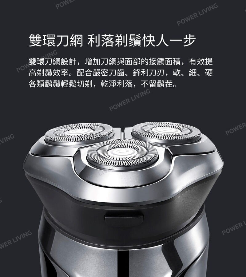 雙環刀網設計,增加刀網與面部的接觸面積,有效提高剃鬚效率