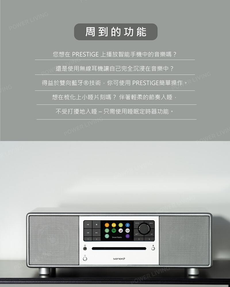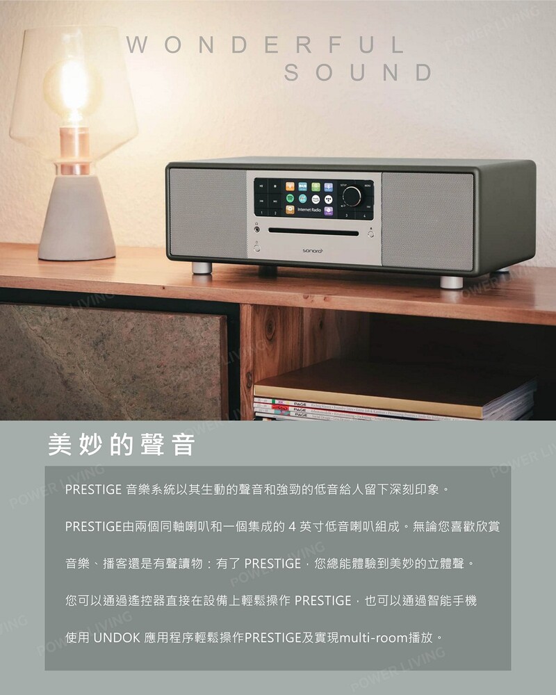- 操作簡單:您可以直接在設備上、通過遙控器或通過智能手機使用 UNDOK 應用程序來控制 Prestige及實現multi-room播放。