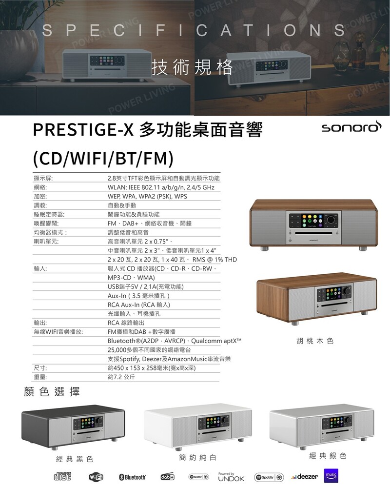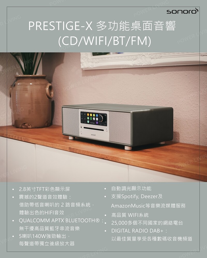 - 高品質 WIFI 系統:將音樂系統連接到您的家庭 WIFI 網絡。