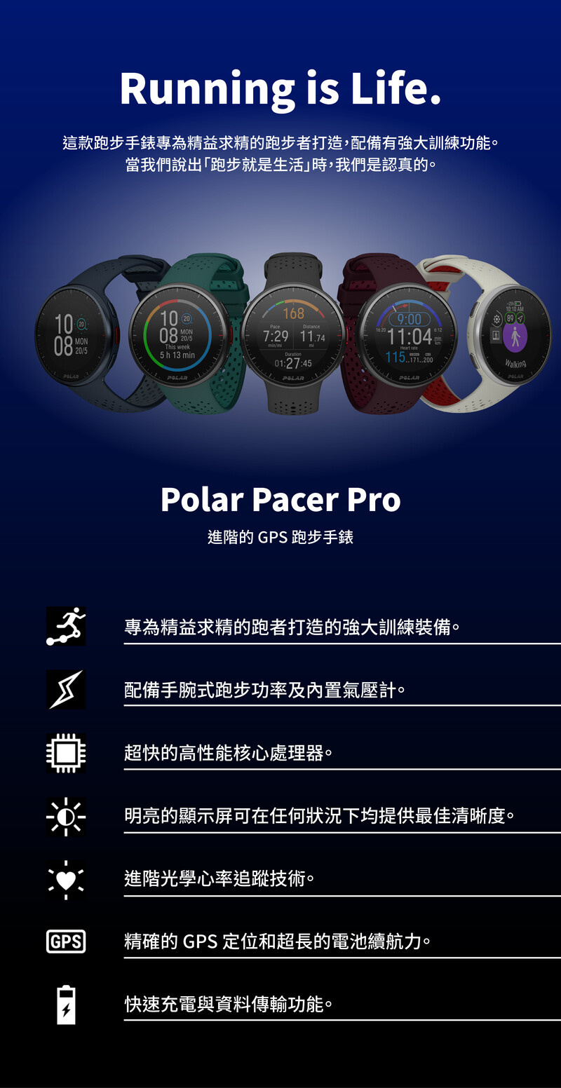 Polar Pacer Pro 進階的 GPS 跑步手錶