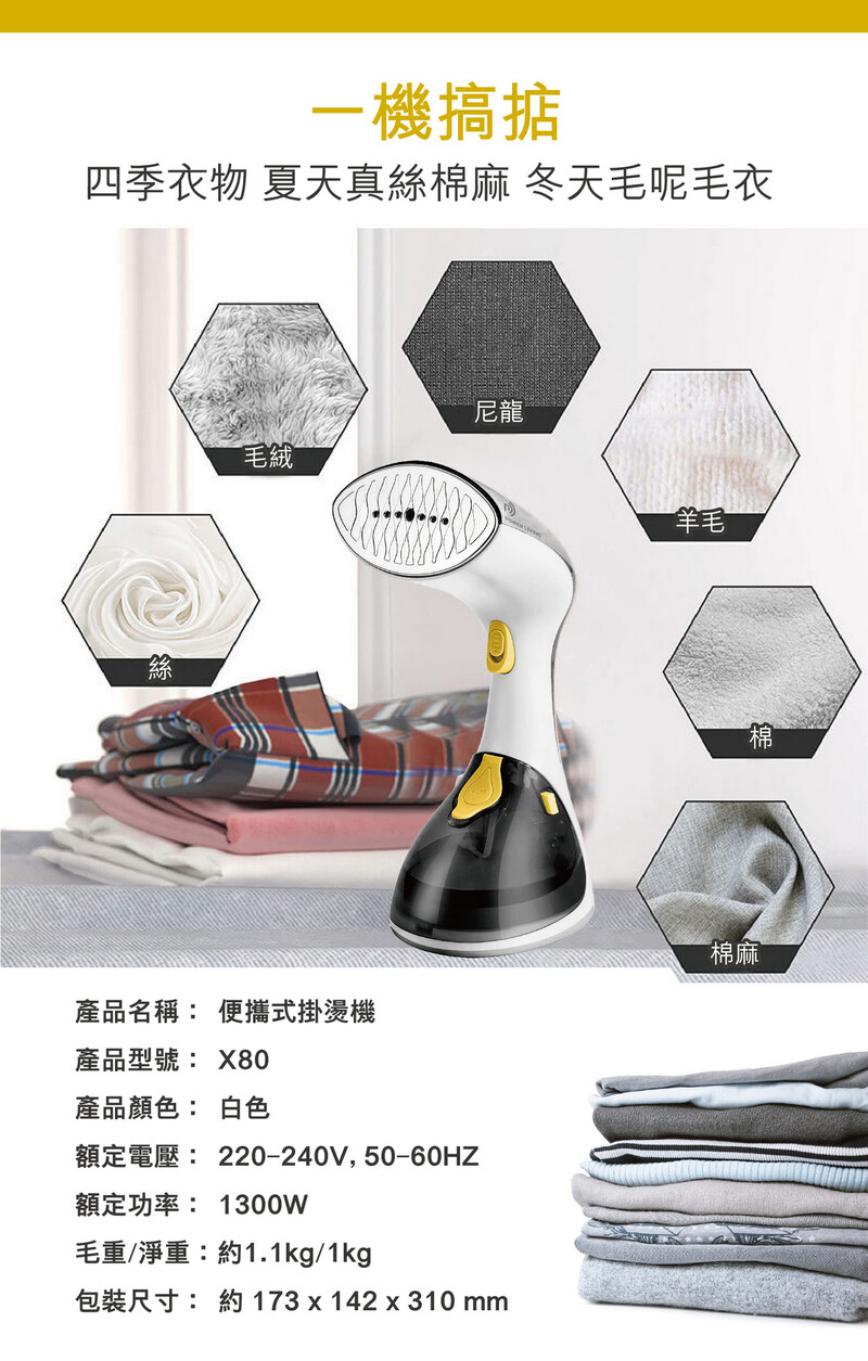 Power Living X80 便攜式掛燙機(1300W)【原裝行貨】【贈送1件 Kusa M3 納米噴霧補水器random colour】【全港免運費】