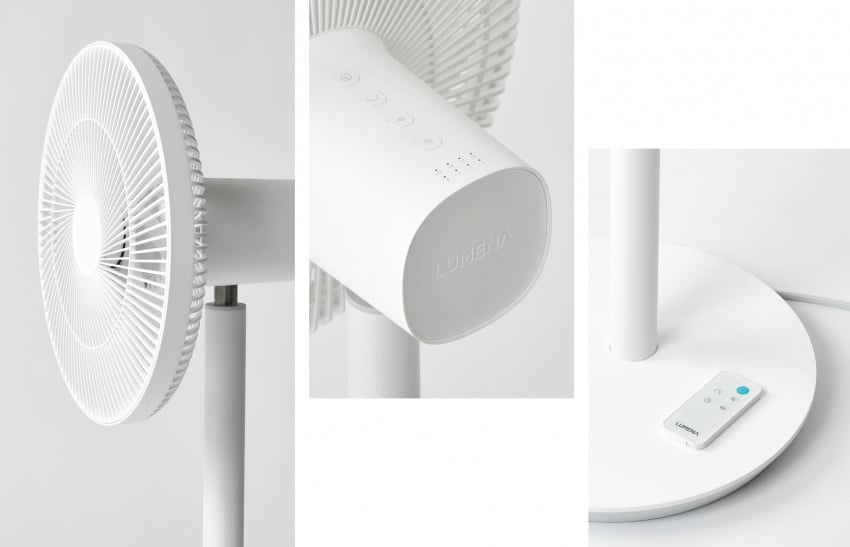 Lumena FAN PLUG 座地風扇,全新的SLIM-EDGE FAN 設計,純白簡約,體積小巧,最大風力可達到15W,獨特7扇葉設計,低噪技術,增加氣流以達致更強力的降溫效果,左右自動旋轉100°, 可調節的廣角送風,最大風距範圍達19米,涼風均勻分佈房間各處。