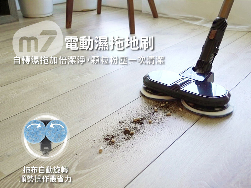 -電動二合一濕拖地刷: 自轉濕拖加倍潔淨, 顆粒粉麈一Take KO