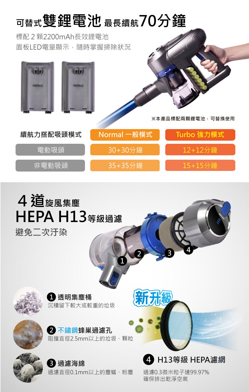 - HEPA H13濾網,不鏽鋼過濾錐,PM0.3過濾99.97%