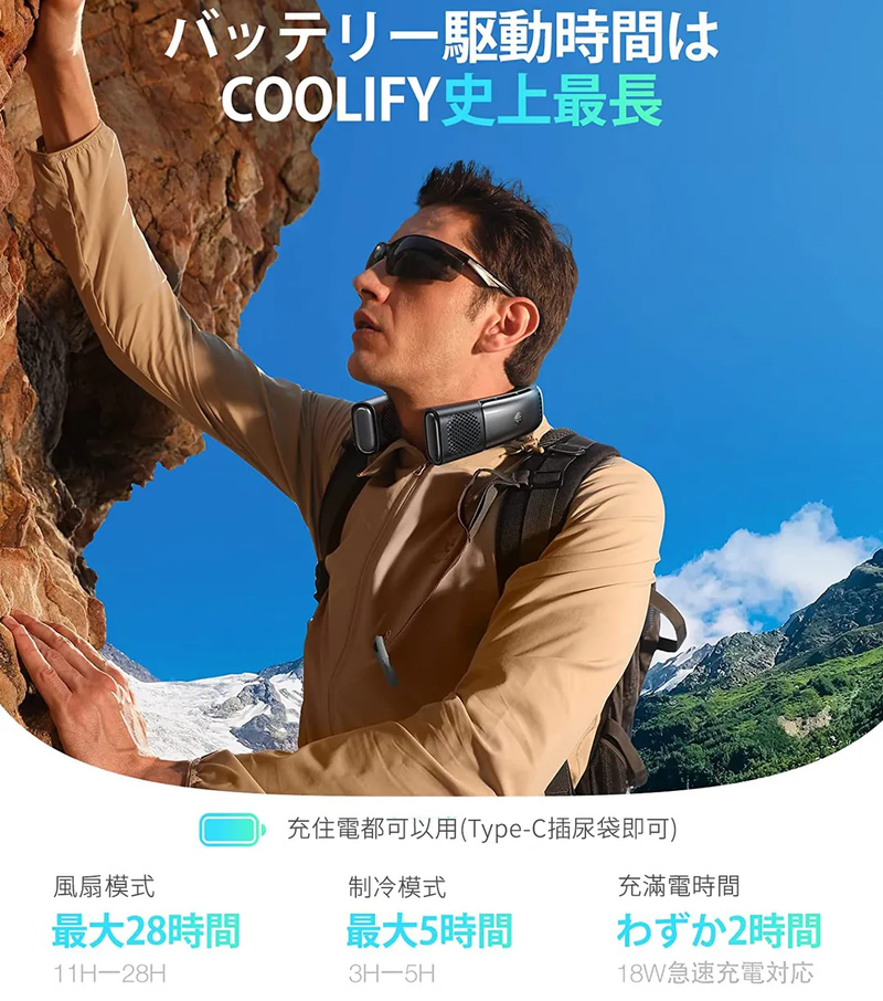 *持久涼爽長達 28 小時。2.5 小時充滿電